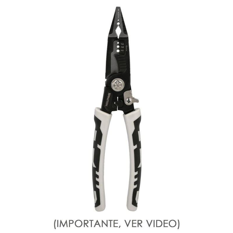 - Articulo conocido como pelacables, cortacables, alicates crimpar terminales, alicates terminales, alicates multifunción, alicates de presión, alicates electricista, multiherramienta electricista.