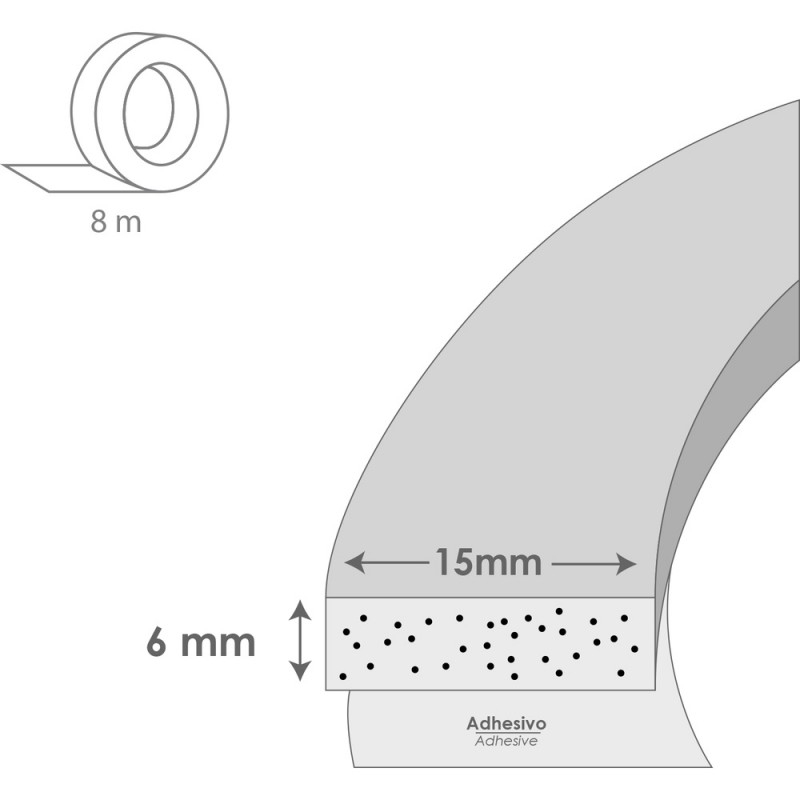 - De 8 metros de largo y 15 mm de ancho, ideal para garantizar un sellado perfecto en tus ventanas.
