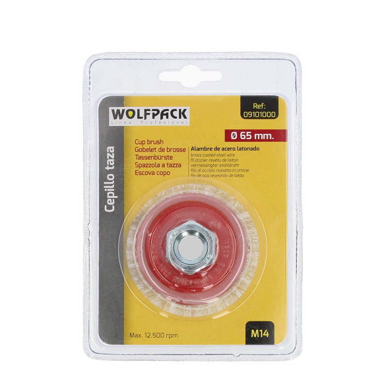 Cepillo Taza Con Alambre De Acero Latonado Rosca M14, Ø 65 mm. Alambre de Ø 0,30 mm.
