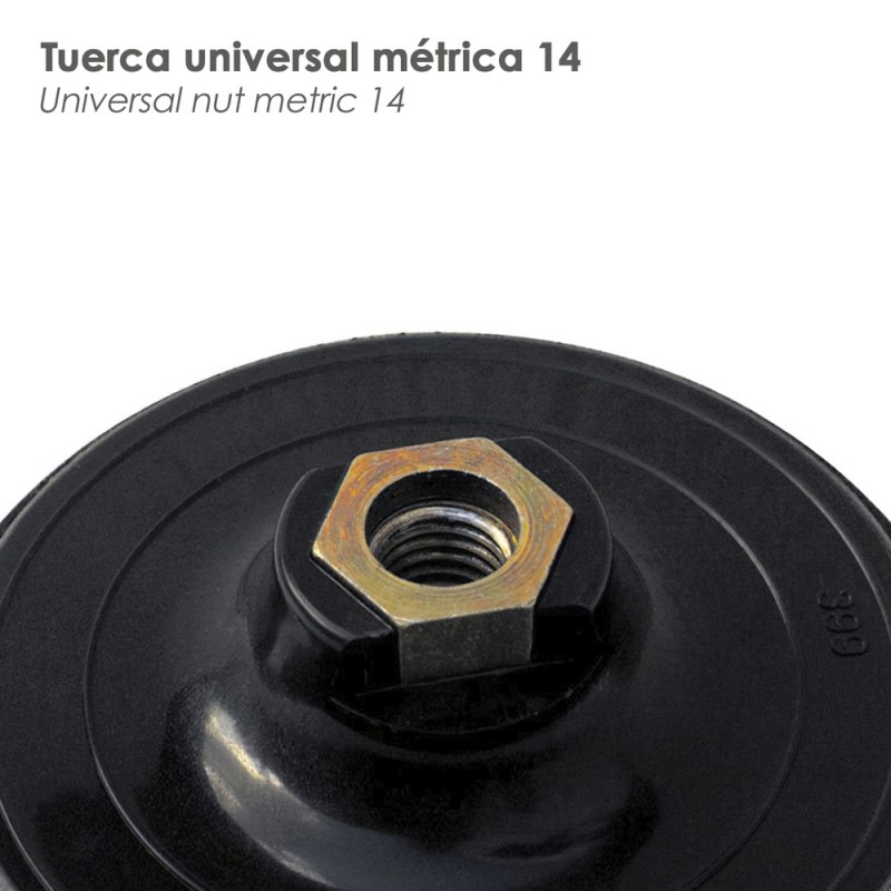 - Plato recubierto de velcro, los discos de lija tienen que llevar velcro para poder ser pegados.