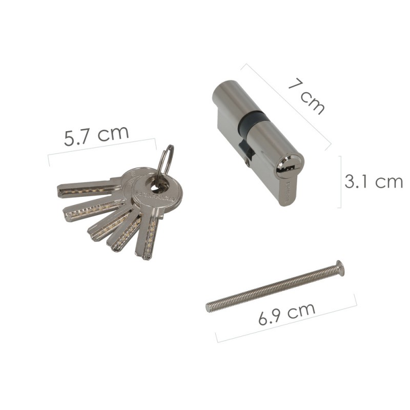 Cilindro Seguridad 35x35 mm/13,5 Leva Corta Niquelado Con 5 llaves