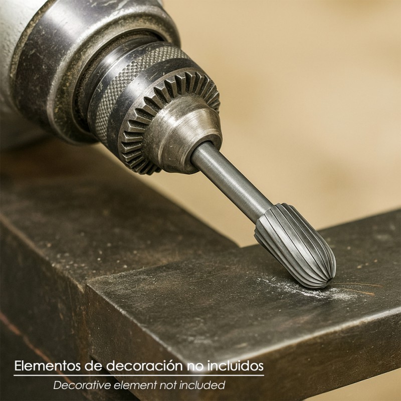 - Herramienta diseñada para trabajos de precisión en metal, permite desbastar, moldear y desbarbar con mayor control en superficies curvas o difíciles.