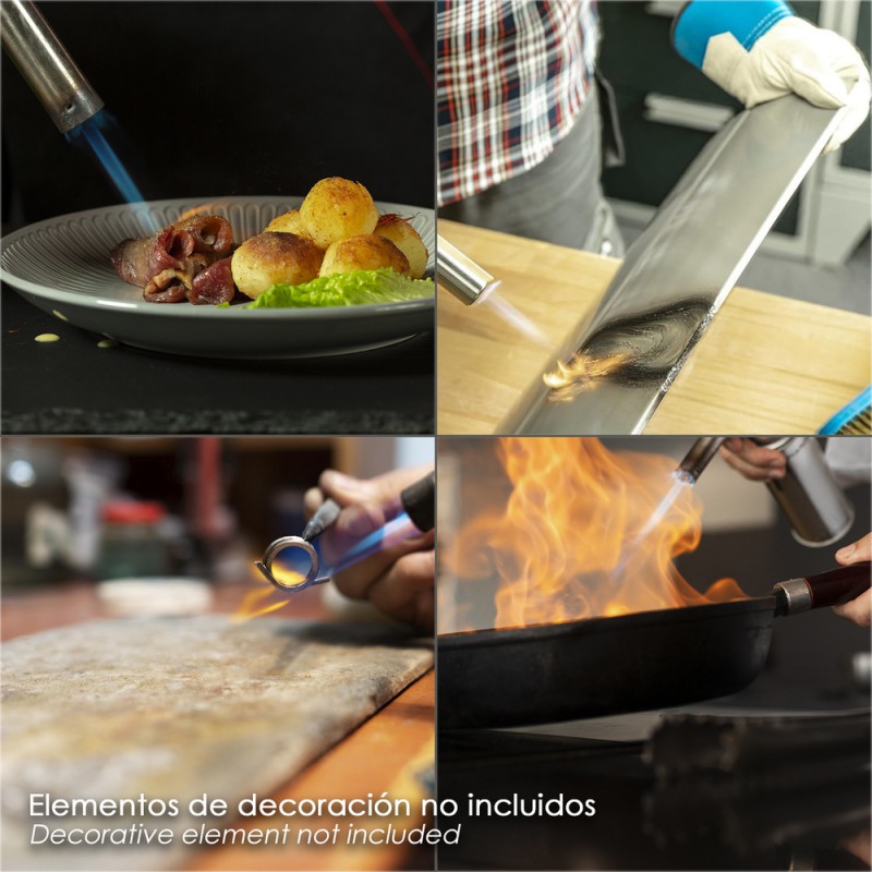 - Ideal para usar en hogar, cocina (flambear, caramelizar, dorar) soldar, talleres, encender barbacoas, descongelación de tuberias congeladas, soldadura tuberias, eliminación de pintura.