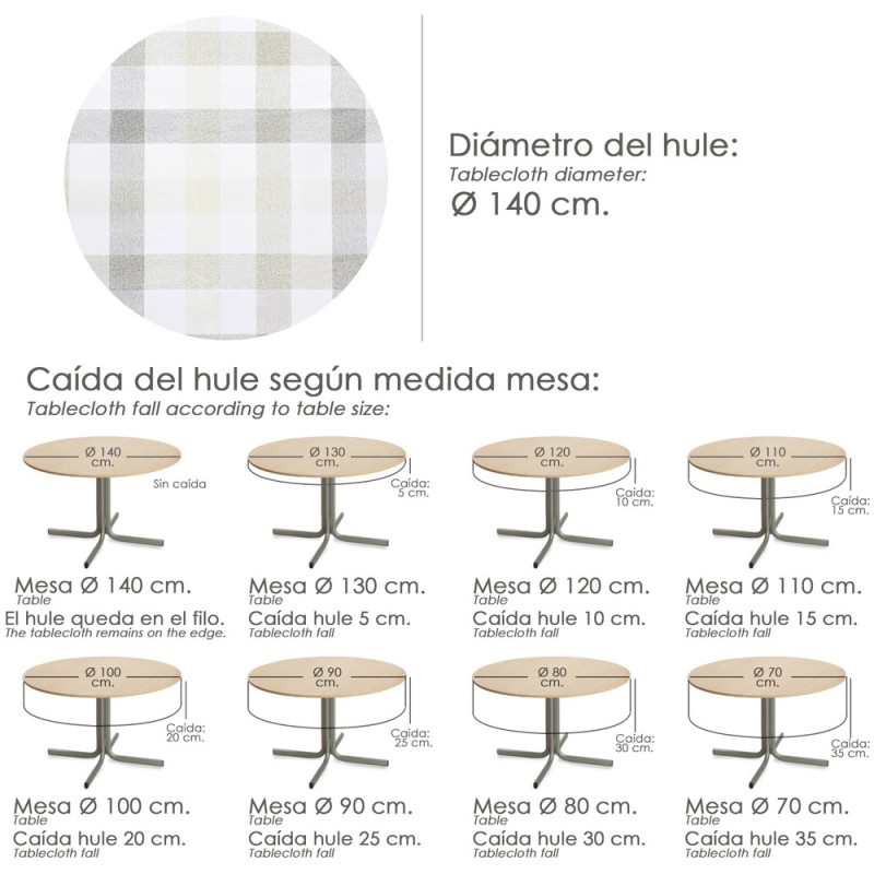 Mantel Hule Redondo Ø 140 cm. Cuadros Beige