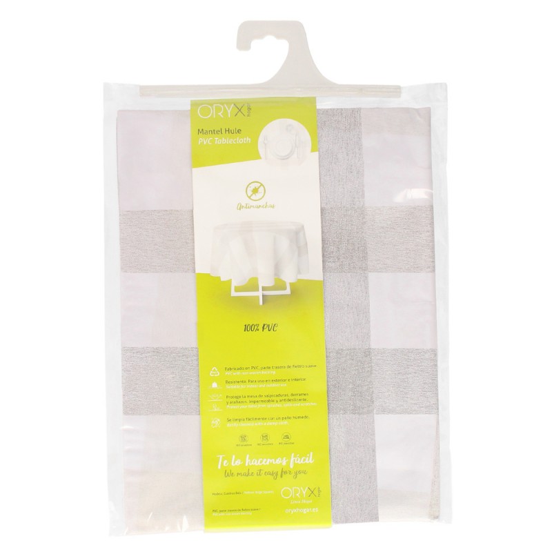 Mantel Antimanchas Hule Redondo Ø 140 cm. Cuadros Beige