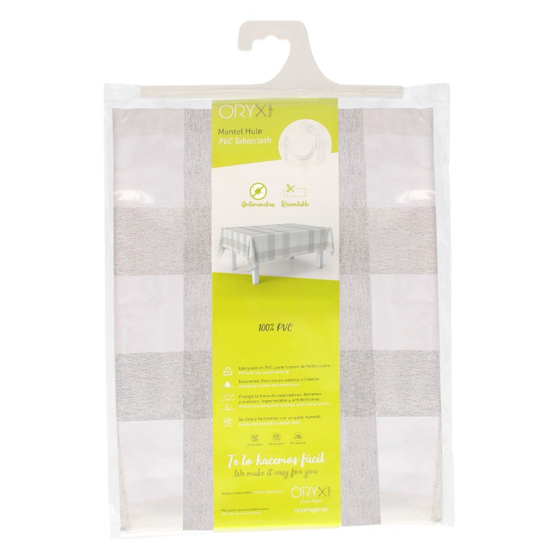 Mantel Hule Rectangular 140 x 250 cm. Cuadros Beige