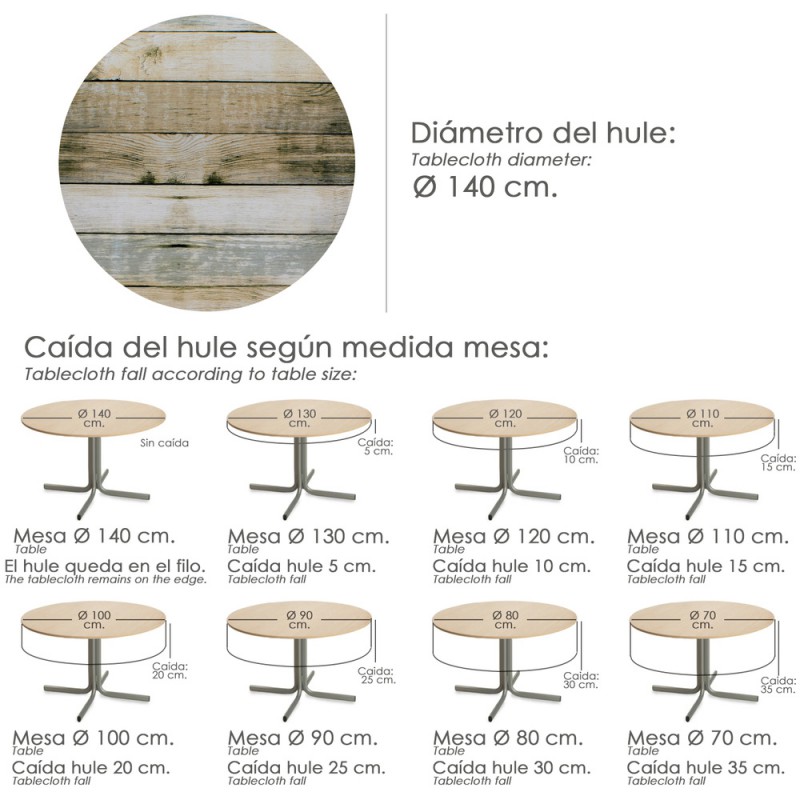 Mantel Hule Redondo Ø 140 cm. Tablones Madera