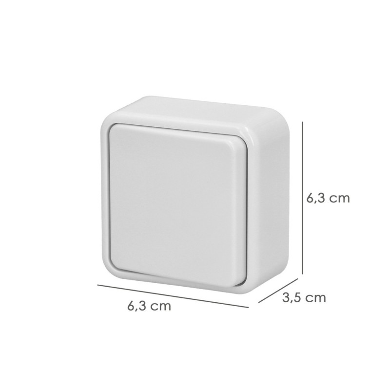 - Artículo también conocido como interruptor, interruptor superficie, interruptor pared, interruptor conmutador, interruptor universal, interruptor unipolar, etc.