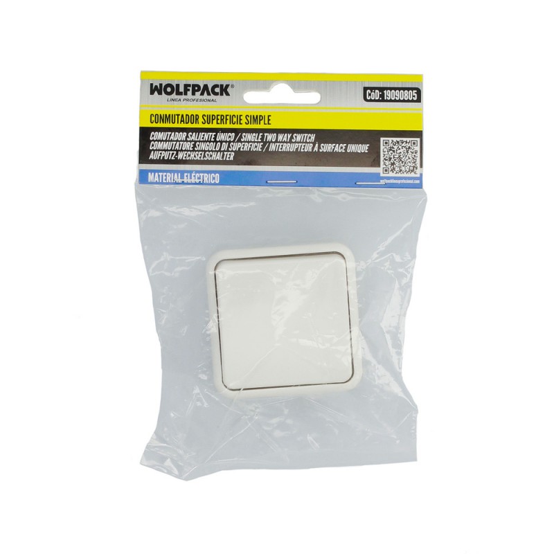 - Artículo también conocido como interruptor, interruptor superficie, interruptor pared, interruptor conmutador, interruptor universal, interruptor unipolar, etc.
