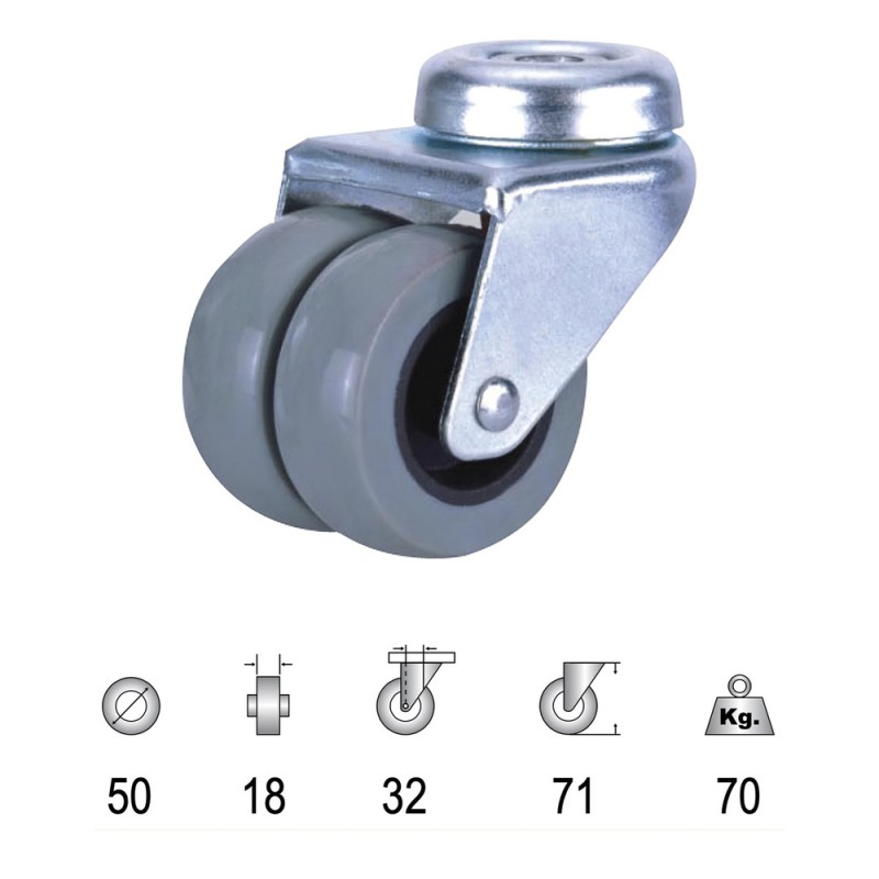 Rueda Doméstica Doble Poliamida Gris Pasante 50mm