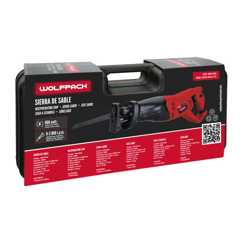 Sierra De Sable 900 Watt. Con Variador de Velocidad, Corte Madera 115 mm. / Acero 8 mm.