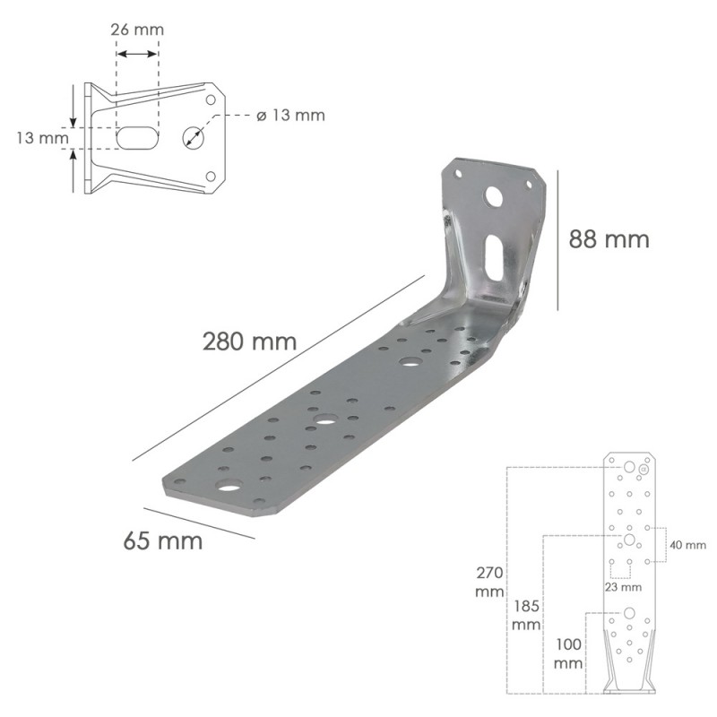 Soporte Para Madera Con Angulo Reforzado 65x88x285 mm.