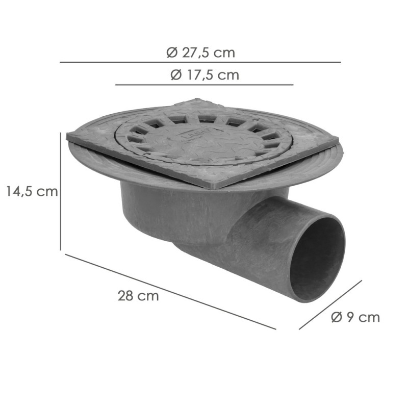 - Con unas medidas de 20x20 cm y una salida horizontal de 90 mm de diámetro